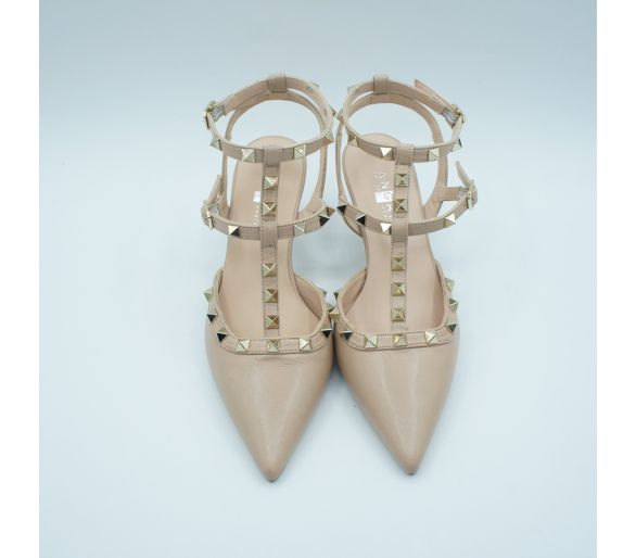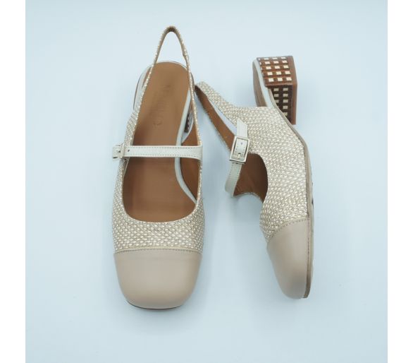 Exterior: napa color beig Interior: piel Plantilla: piel Altura tacón 6cm Cierre con elástico al tobillo y hebilla regulable sobre el empeine.