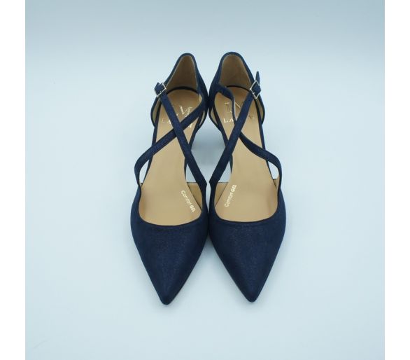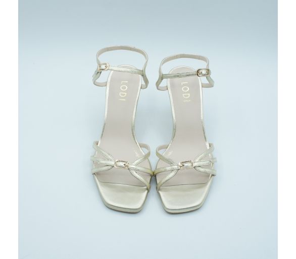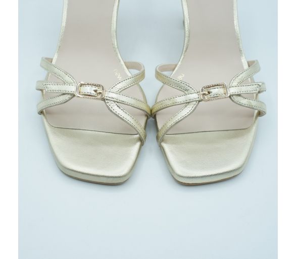 Fabricado en piel metalizada color cava. Punta fina. Plantilla piel. Cierre con tira al tobillo y hebilla regulable. Tacón de 7 cm muy estable. Plantilla antideslizante. Fabricado en España.