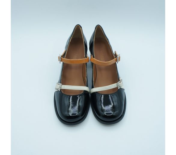 Exterior: piel charol Interior: piel Plantilla: piel Tacón: 3 cm Suela: goma