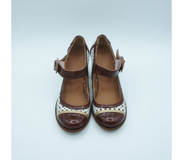 Exterior: piel Interior: forro textil y plantilla en piel Suela: goma Tacón bloque altura 4,5cm y plataforma de 2,5cm