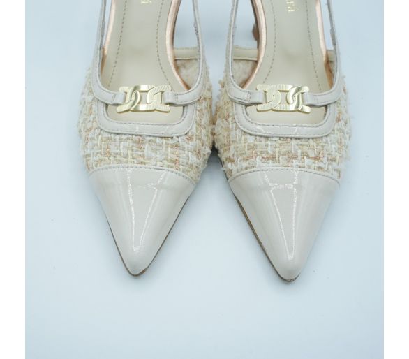 Exterior: piel charol Interior: piel Plantilla: piel Altura tacón 4 cm Cierre con tira al tobillo con elástico para una mejor adaptación y sujección.
