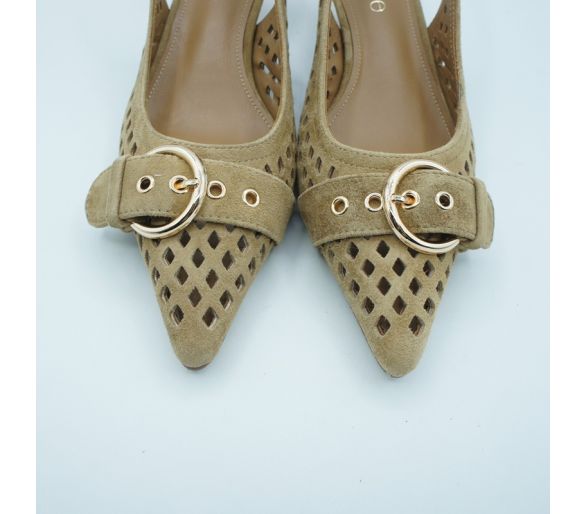 Exterior: antelina Interior: textil Plantilla: piel Altura tacón 5cm y plataforma 2cm