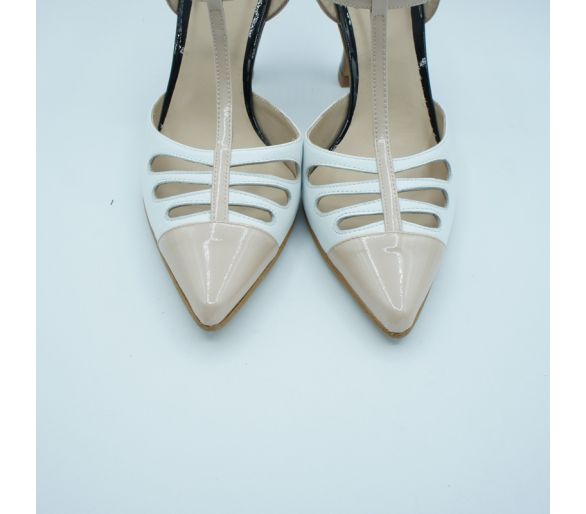 Exterior: vinilo transparente Interior: piel charol Plantilla: piel charol Altura de tacón 2cm,