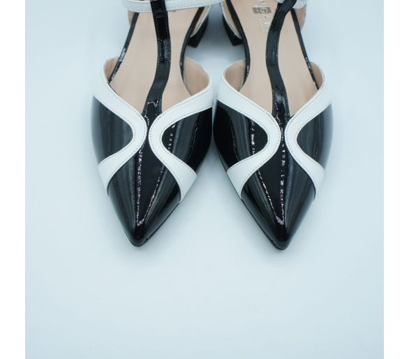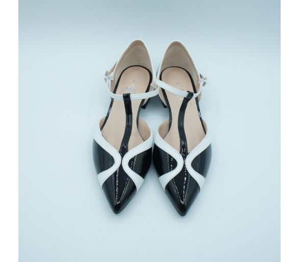 Exterior: piel charol Interior: piel Plantilla: piel Punta redondeada Altura de tacón 6 cm Sujeción con dos tiras sobre el empeine con hebilla regulable,