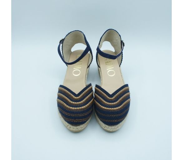 Material exterior: 100% AlgodónPlantilla: AlgodónSuela: 100% Suela de yute natural y gomaAltura: 1,5 cm cuña delantera y 2 cm de cuña traseraFabricación: Cosidas a mano en España, en nuestra fábrica de Arnedo (La Rioja)