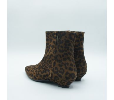 El modelo Magnolia de Gaimo reinterpreta el botín western con un estilo boho actualizado. De líneas limpias y atemporales, presenta un diseño minimalista en suave piel de ante con estampado leopardo, con cremallera lateral, puntera afilada y tacón bajo forrado que estiliza la silueta sin renunciar a la comodidad. Hechos a mano en Arnedo, La Rioja, estos botines son la opción perfecta para aportar un toque western chic a tus looks urbanos.