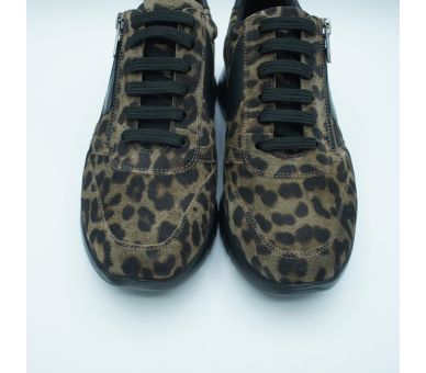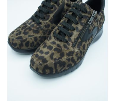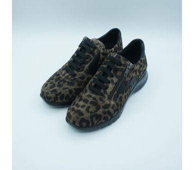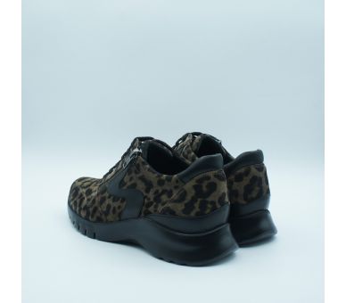 Zapato estilo deportivo, superconfort de Pie Santo. Fabricado en ante con estampado print animal, en tonos marrones y negros. Es muy ligero e incluye plantilla extraíble para que puedas cambiarla por la tuya. Cierre con cordones y cremallera lateral para un calce más rápido, Suela de goma muy ligera y altura de 3cm. Si tienes algún problema en los pies, pasas muchas horas trabajando de pie, o caminas mucho, este zapato es el tuyo, podrás ir super in sin renunciar a comodidad.