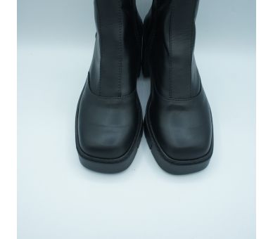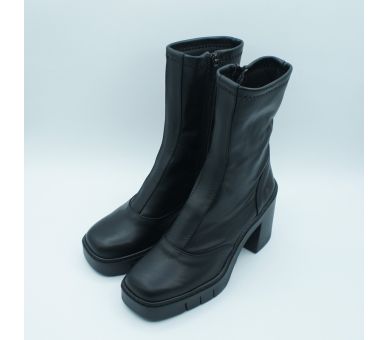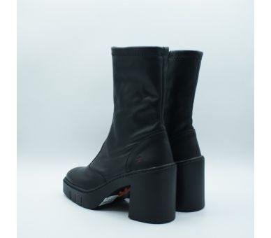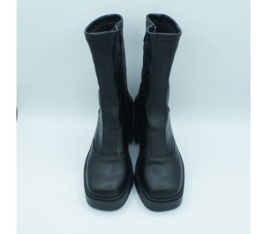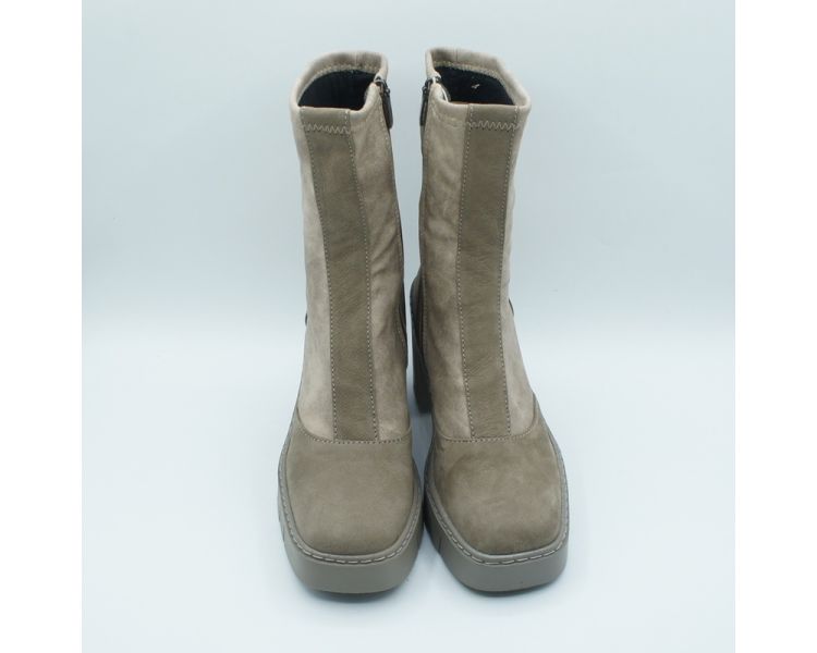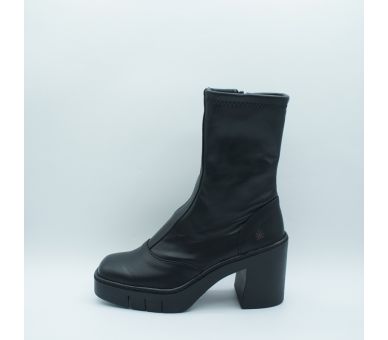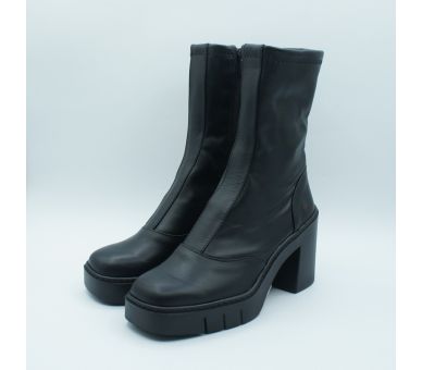 Botín 1973 Berna de la colección de Art que tienes disponible en dos acabado, nappa en color negro y  nobuck en color taupe. Punta cuadrada, cierre con cremallera interior de fabricada con materiales reciclados. Suela de goma muy ligera con plataforma, altura del tacón 8cm y plataforma 3 cm. Altura de la caña 17 cm, en licra elástica que permite adaptarse a la pierna. Interior en textil y plantilla extraíble de microfibras.
