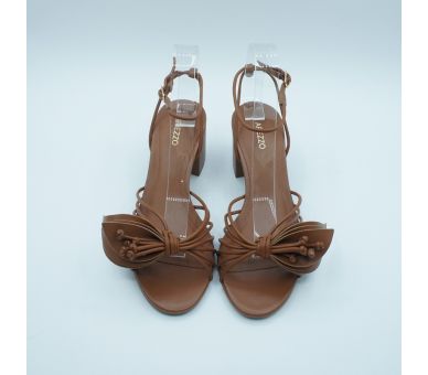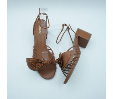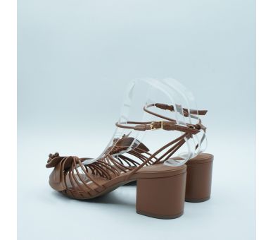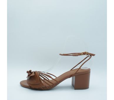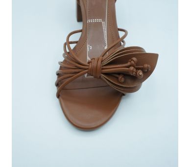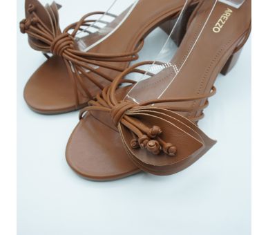 Esta sandalia de Arezzo es una preciosidad, fabricada en piel color cuero, con tiras finas trenzadas con detalle de ramillete de flores sobre el empeine, un detalle original y muy elegante. Cierre con tira fina a modo de pulsera en el tobillo con hebilla regulable. Tacón ancho de 5,5cm muy cómodo aunque no esté acostumbrada a tacones. Es muy cómoda y elegante.