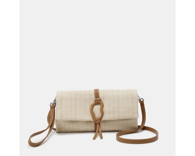 Destaca por su detalle frontal decorativo que añade personalidad al diseño, mientras que su formato compacto lo convierte en el complemento perfecto para llevar lo esencial con estilo. Además, este modelo ofrece varias formas de uso gracias a su bandolera extraíble y su correa de mano desmontable, permitiendo adaptarlo fácilmente a distintos momentos del día.