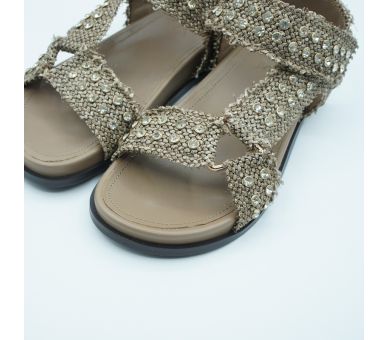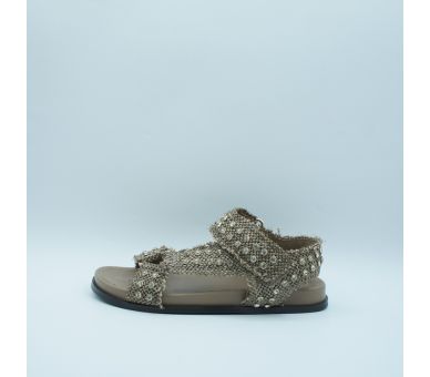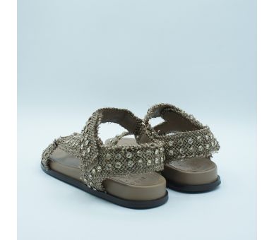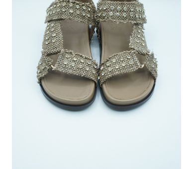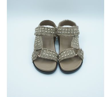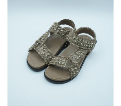 Sandalia con planta bio de Lagúm, fabricada en color taupe, con tiras en simil rafia con piedras. Cierre con pulsera al tobillo y velcro que se adaptará perfectamente a tus pies. Comodidad absoluta en este tipo de plantilla que hacen de esta sandalia tu mejor compañera este verano. Suela de goma.