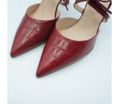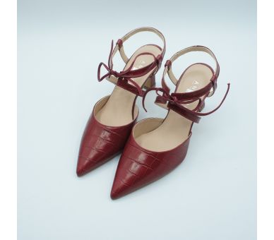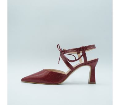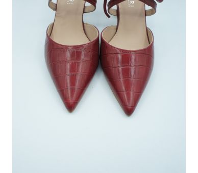Este zapato estilo angelito destalonado de Angari, nos tiene enamoradas, fabricado en piel simil coco en color cereza, me parece estiloso y muy elegante, un compañero perfecto para tu día a día y para esas ocasiones más especiales. Cierre con abrazadera sobre el empeinde y con cordón. Tacón ancho de 7,5cm my cómodo y forrado en la misma piel. Calza bien pero si estáis entre dos números pídete el superior.